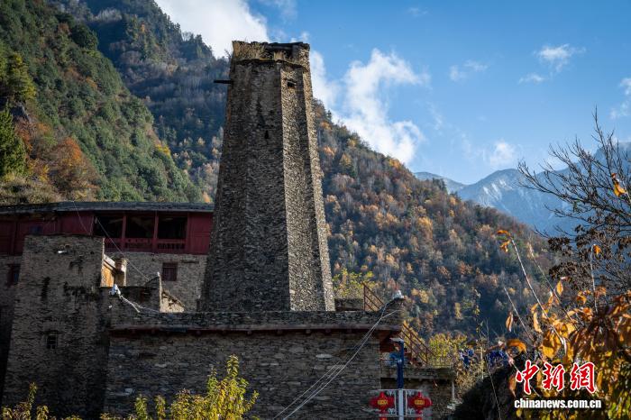 图为乌虎羌寨中的修筑。韩金雨 摄